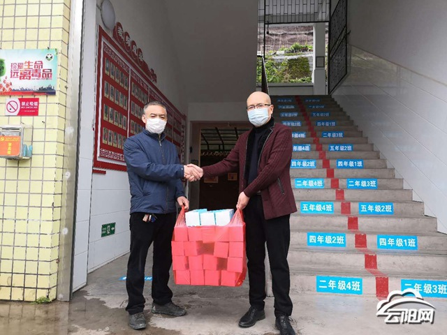云陽網(wǎng)訊(通訊員 向偉)4月22日,云陽縣金昌農(nóng)副產(chǎn)品有限公司向立新小學(xué)捐贈一次性醫(yī)用口罩1000個,助力學(xué)校安全復(fù)學(xué)。