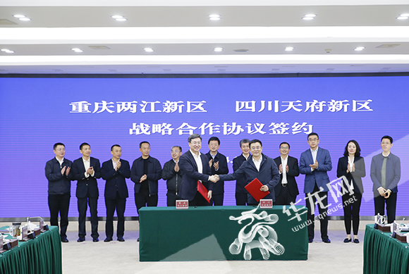 重慶兩江新區(qū)、四川天府新區(qū)舉行戰(zhàn)略合作協(xié)議簽約儀式。華龍網(wǎng)-新重慶客戶端 記者 李文科 攝