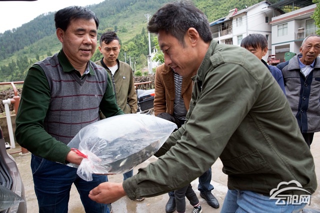 云陽網(wǎng)訊 (記者 劉興敏)“楊宗能,半畝水面,鳊魚和青波魚各半袋;王柏安,一畝半,鳊魚半袋,青波魚一袋……”4月24日,泥溪鎮(zhèn)石蛋村支部書記楊章將重慶市科技特派員、重慶市國家“三區(qū)”科技人才、云陽縣進村幫扶科技特派員、市生態(tài)漁產(chǎn)業(yè)技術體系“水產(chǎn)綠色生態(tài)養(yǎng)殖模式研發(fā)與示范”功能研究室專家、西南大學副教授鄭永華和唐洪玉贈送的大規(guī)格魚種分配到貧困戶和養(yǎng)殖專業(yè)戶手中。