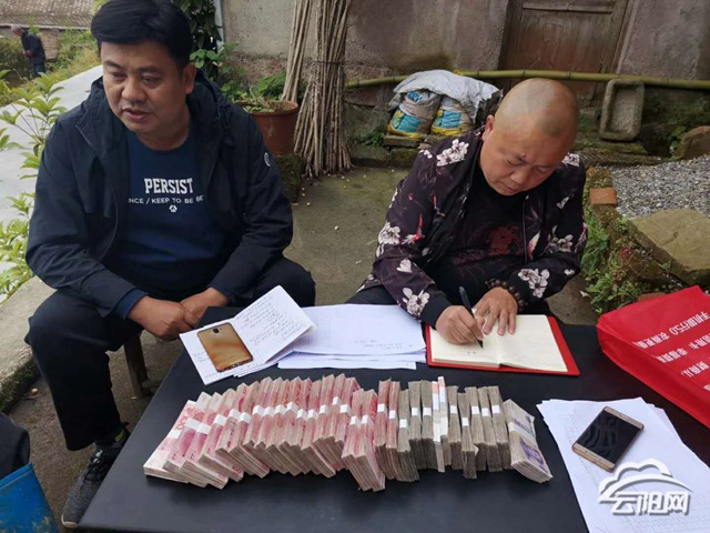 云陽(yáng)網(wǎng)訊(通訊員 于楊)近日,南溪鎮(zhèn)宏實(shí)村召開(kāi)院壩會(huì),豐歌農(nóng)業(yè)開(kāi)發(fā)有限公司工作人員正在為基地150余名務(wù)工農(nóng)戶發(fā)放前兩個(gè)月的工資,這是復(fù)工后第一筆勞務(wù)工資。農(nóng)戶們焦急而又耐心地等待工作人員叫自己的名字,難掩內(nèi)心的喜悅。