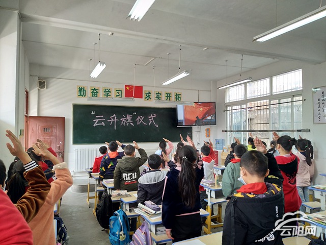 “全體起立、升國旗、奏國歌!”特殊時期,團壩小學同學們參加了這樣一場別開生面的“云升旗”儀式:他們在各自教室屏幕前莊嚴肅立,行注目禮。