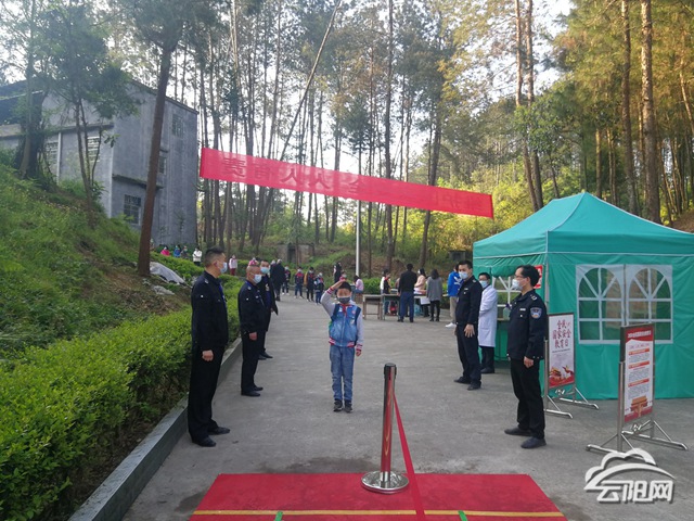 “叔叔,你們辛苦啦!”看到鄉(xiāng)應急辦工作人員、保安著裝整齊,嚴陣以待地維持著現場秩序,石門小學的同學們舉手行禮表示崇高的敬意。