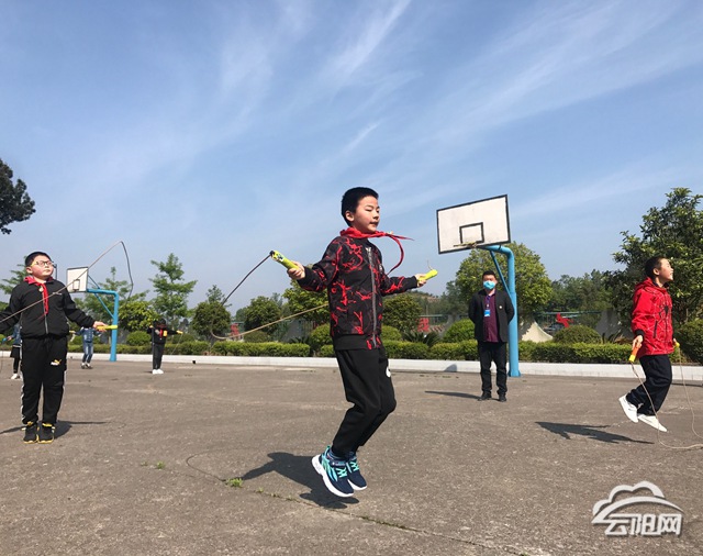 課間,白鶴小學的同學們分區(qū)活動。跳繩、呼啦圈、原地跑步……都要時刻保持安全距離,“美麗的校園充滿陽光,動起來,真精彩!”