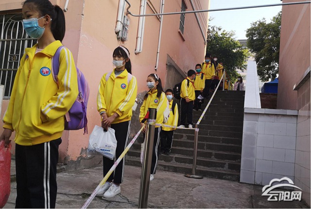 為切實做好當(dāng)前學(xué)校復(fù)學(xué)復(fù)課工作,確保4至6年級學(xué)生返校報到安全、有序,該鎮(zhèn)成立學(xué)校復(fù)學(xué)領(lǐng)導(dǎo)小組,制定縝密防控方案,建立黨群辦、衛(wèi)生院等多部門聯(lián)防聯(lián)控應(yīng)急機制,落實各自責(zé)任。上午8點10分左右,學(xué)生分散有序到校園門口進行測溫,學(xué)校工作人員發(fā)放口罩,學(xué)生經(jīng)過免洗手消毒后,分別到各班報名點報到。學(xué)生有序進入教學(xué)樓后,班主任在教室門口手持測溫槍再次進行測溫,一旦有發(fā)熱學(xué)生,立即安排到臨時觀察室處理。根據(jù)晨午晚檢安排,學(xué)生在校期間將有4次不定期體溫檢測。