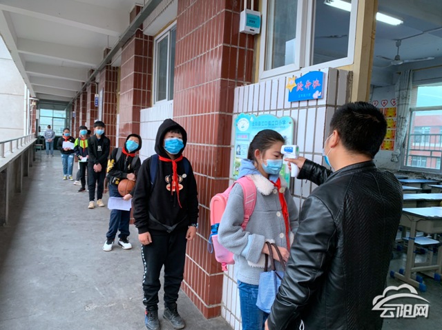 云陽網(wǎng)訊(通訊員 郭艷 肖先輝)4月27日,江口小學(xué)四、五、六年級(jí)1700余學(xué)生在晨風(fēng)的指引中,朝陽的陪伴下返校復(fù)課。在疫情防控時(shí)期,今年的入學(xué)也以特別的形式迎接學(xué)生:測(cè)體溫、消毒、固定的行走路線……