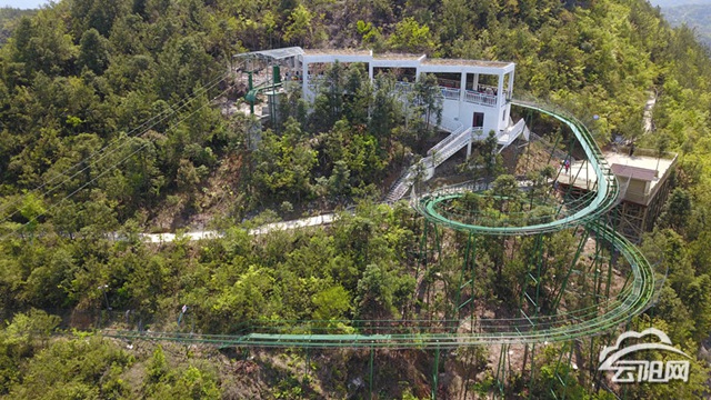 記者了解到,云端飛車出發(fā)點位于映月洞入口上方,終點直達(dá)牽手廊橋玻璃棧道,全程滑道長度800米左右,落差達(dá)到100多米,體驗時間約3分鐘,整個項目建于懸崖峭壁之上,灌木叢林之中,游客們在游玩之際,不僅可以體驗處于高空的刺激,還可以體驗穿越叢林的驚險。