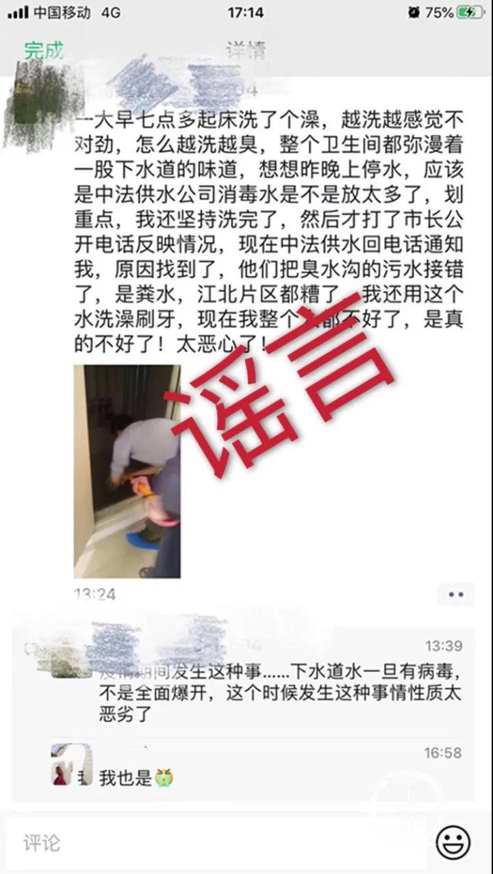 4月27日,一則關(guān)于江北區(qū)供水異常的截圖在微信朋友圈里流傳。截圖中某居民稱,由于中法供水接水管道施工出現(xiàn)事故,將污水管道接成了糞水,影響了整個(gè)江北區(qū) 。