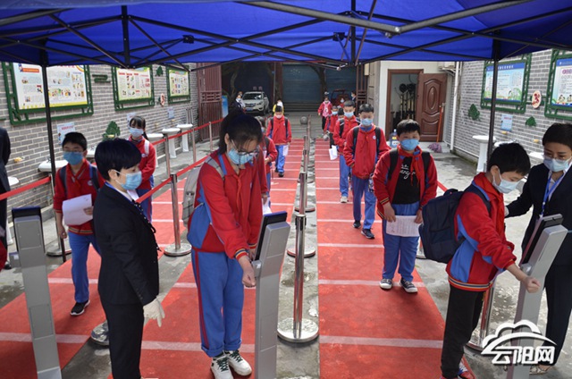 一大早,記者來到小學門口,看見學校負責人面帶微笑迎接著同學們的到來。據(jù)校長介紹,從家到教室,每位學生需經(jīng)過四個環(huán)節(jié):出門前家長要給孩子測量體溫并做好詳細記錄;復學三個年級從早上七點到八點半分三批次到校,值周老師再次復查體溫;到達教室前,班主任復查體溫,同時要求用消毒液消毒雙手以保證學生安全再進入教室。