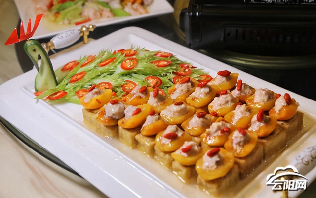 近日,記者就在城區(qū)的恒生酒樓看到,在廚師的操刀下,一大桌“巴陽清肺養(yǎng)生枇杷宴”就做了出來。只見餐盤內(nèi)有的還保留著枇杷的外形,但內(nèi)部已填滿了枸杞、嫩肉做成了獨(dú)特的造型;有的枇杷被切成了條狀,配著蝦仁、墨魚仔炒成了美味的菜肴;有的則被做制成了美味的枇杷蛋撻。