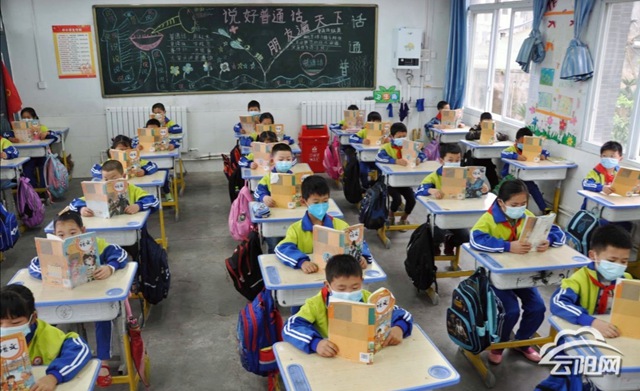 走下“空中課堂”,相逢美麗校園?!霸诩冶锏锰昧耍荛_(kāi)心回到學(xué)校!”大陽(yáng)小學(xué)三年級(jí)二班學(xué)生吳秋霜說(shuō),老師還是一樣的親切,同學(xué)們也是熟悉的模樣,感覺(jué)心里非常暖暖的。雖然都戴著口罩,卻阻擋不住大家學(xué)習(xí)的熱情。“碧玉妝成一樹(shù)高,萬(wàn)條垂下綠絲絳……”該班同學(xué)正在學(xué)習(xí)古詩(shī)《詠柳》,瑯瑯的讀書(shū)聲回響在沉寂數(shù)月的校園上空。