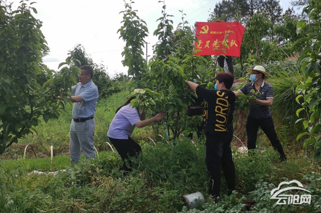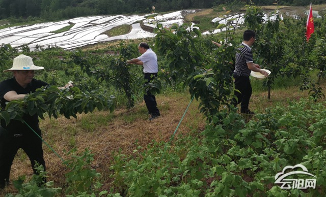 云陽(yáng)網(wǎng)訊(通訊員 黃鈺涵)5月6日,歧陽(yáng)小學(xué)黨支部走進(jìn)蔈草鎮(zhèn)長(zhǎng)嶺社區(qū),與社區(qū)工作人員一起為梨樹(shù)疏果,幫助缺少勞動(dòng)力的種植戶不誤生產(chǎn)。