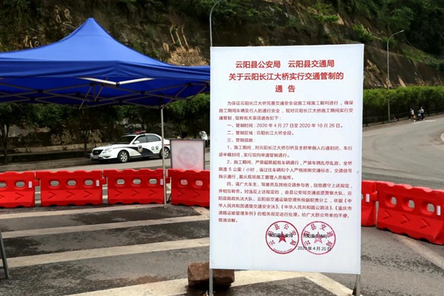 云陽網(wǎng)訊(記者 陳愛玲 徐銳)5月8日,云陽長江大橋維修加固工程正式施工,為保證施工順利進(jìn)行,長江大橋?qū)嵭薪煌ü苤浦?0月26日。