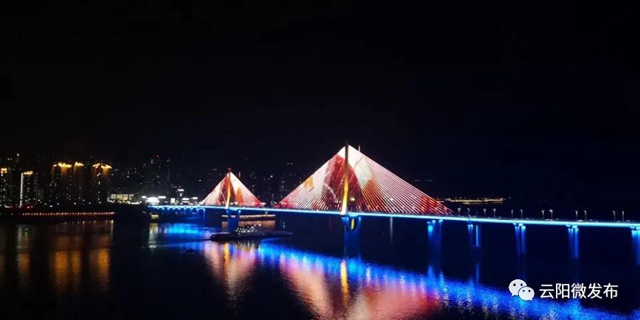 同時,云陽長江大橋不僅是交通要道,也是云陽一道美麗的風(fēng)景線。每當(dāng)夜幕降臨,大橋上美輪美奐的“燈光秀”為城市增添了色彩。但施工期間長江大橋景觀照明燈飾及路燈也將實施整體關(guān)閉,2020年底恢復(fù)亮燈。