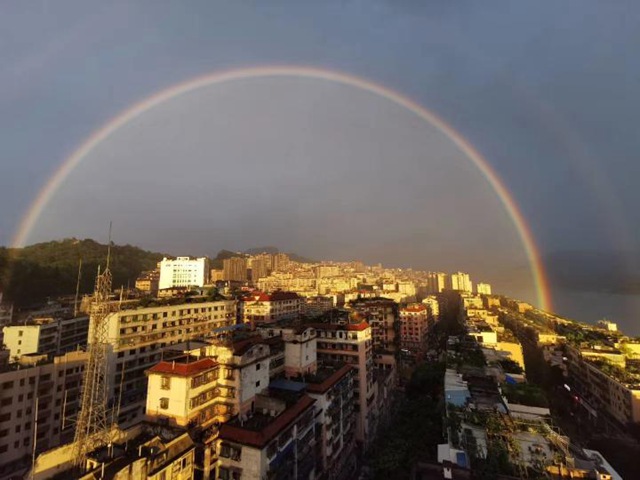 久違的彩虹像一座七彩天橋呈現(xiàn)在天空