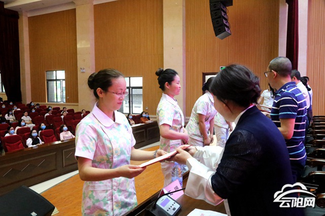 據(jù)悉,今年護士節(jié)的主題是“致敬護士隊伍,攜手戰(zhàn)勝疫情”,活動中,縣中醫(yī)院為12名優(yōu)秀護理工作者頒發(fā)了榮譽證書,還頒發(fā)了優(yōu)質(zhì)護理服務(wù)病區(qū)的科室獎牌。縣中醫(yī)院援鄂代表唐和平與同事分享了自己在援鄂期間的感人故事,贏得了臺下陣陣掌聲?;顒幼詈?,醫(yī)院護理工作人員帶來了精彩八段錦表演,展示了傳統(tǒng)功法的魅力。