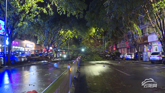 云陽(yáng)網(wǎng)訊(記者 徐磊磊)5月16日,城區(qū)出現(xiàn)強(qiáng)降雨和大風(fēng)天氣,城區(qū)多處行道樹(shù)倒伏,部分路段交通一度中斷。險(xiǎn)情出現(xiàn)后公安、消防、市政等部門(mén)積極響應(yīng),組織力量連夜開(kāi)展清理工作。