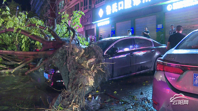 記者注意到,有的行道樹(shù)是從枝椏的地方被吹斷,有的則是被連根拔起,不少停在路邊的車輛遭了殃。