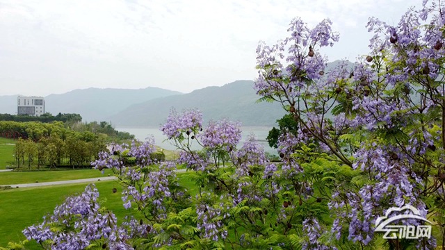 云陽:藍花楹唯美綻放 月光草坪錦上添花