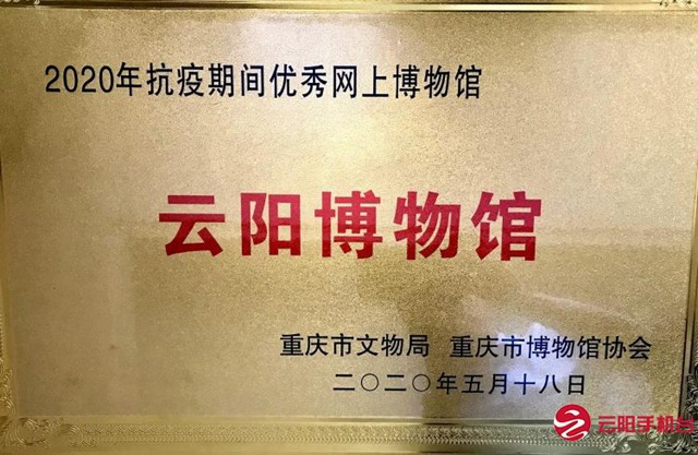 6.【祝賀!云陽(yáng)博物館又獲獎(jiǎng)】在重慶“5·18國(guó)際博物館日”暨第十一屆文化遺產(chǎn)宣傳月活動(dòng)中,云陽(yáng)博物館榮獲“2020年抗疫期間優(yōu)秀網(wǎng)上博物館”“2020年度重慶市文物保護(hù)優(yōu)質(zhì)工程”“重慶市最佳創(chuàng)意產(chǎn)品獎(jiǎng)”“優(yōu)秀參展單位”等殊榮。