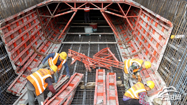 施工現(xiàn)場,工人們正在緊張有序地作業(yè),進行橋梁的鋼結(jié)構(gòu)架構(gòu)工序?!澳壳?,只有0號和29號橋臺還未施工,其余橋臺都已完成。整座大橋已經(jīng)完成了18跨的梁體澆筑,預計在8月29日完成最后一跨梁體澆筑?!编嵢f鐵路重慶段九標中鐵十一局項目二分部技術(shù)員嚴文龍告訴記者,橋梁主體完工后,將進行橋面系施工,預計在2021年1月1日開始鋪軌。