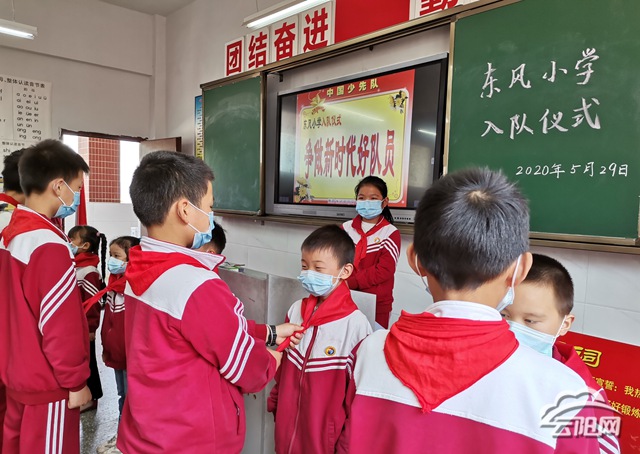 云陽網(wǎng)訊(通訊員 邱露)5月29日,云陽縣云陽鎮(zhèn)東風(fēng)小學(xué)舉行了“爭做新時(shí)代好隊(duì)員”一年級入隊(duì)儀式,歡迎17名新生光榮加入中國少年先鋒隊(duì)。