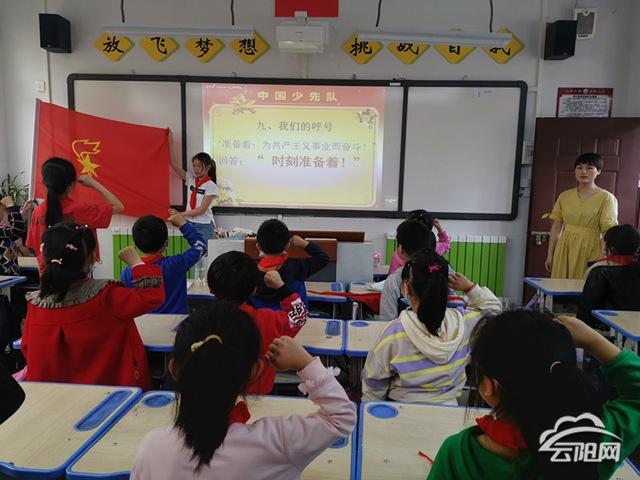 活動分為不同年級舉行,一年級的孩子們舉行入隊儀式,學(xué)習(xí)隊前教育,了解隊史、少先隊標(biāo)志禮儀,學(xué)習(xí)紅領(lǐng)巾的正確系法,老師們耐心地教授,孩子們虛心地學(xué)習(xí)。隨后,孩子們一起齊唱隊歌,為入隊做準(zhǔn)備。