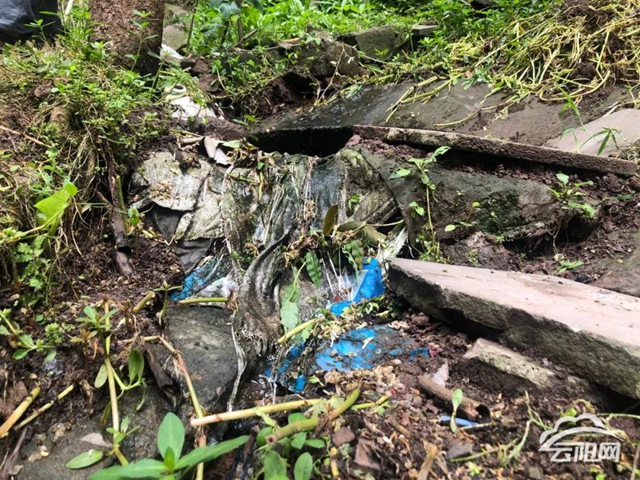 斜坡上面五同路124號(hào)連著幾棟樓的生活污水