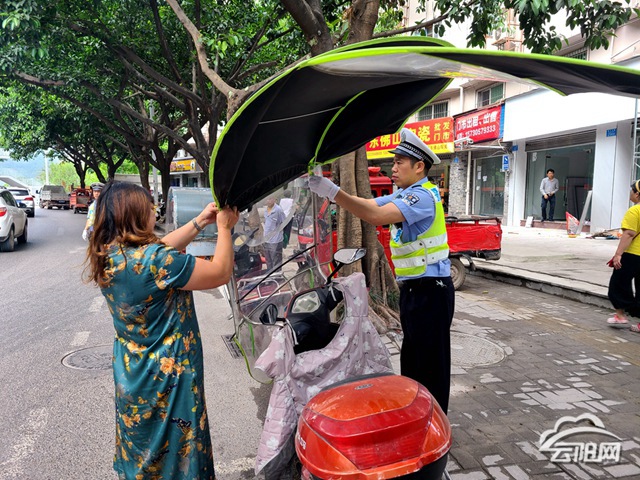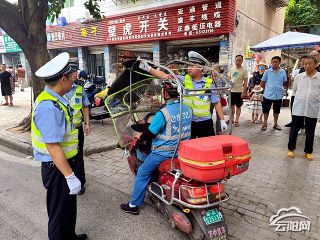 云陽(yáng)網(wǎng)訊(記者 王彬彬 )6月7日,縣交巡警大隊(duì)在城區(qū)開展“一盔一帶”整治教育行動(dòng),為市民營(yíng)造良好的交通出行環(huán)境。