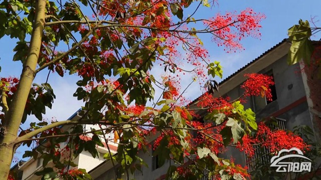 火焰木樹形十分優(yōu)美,花深紅色,量大而艷麗,適合庭院和公園種植,也可作沿路生態(tài)景觀建設(shè)。龍角鎮(zhèn)結(jié)合云利路景觀建設(shè),在場鎮(zhèn)路段栽植有100多棵火焰木,目前開花期還可持續(xù)約一個(gè)月。