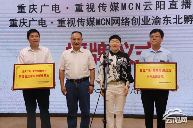 儀式上,市人才交流服務(wù)中心主任宋成、重慶時(shí)尚頻道副總監(jiān)謝尚碧為“重慶廣電重視傳媒MCN網(wǎng)絡(luò)創(chuàng)業(yè)渝東北孵化基地”“重慶廣電重視傳媒MCN云陽(yáng)直播基地”授牌。