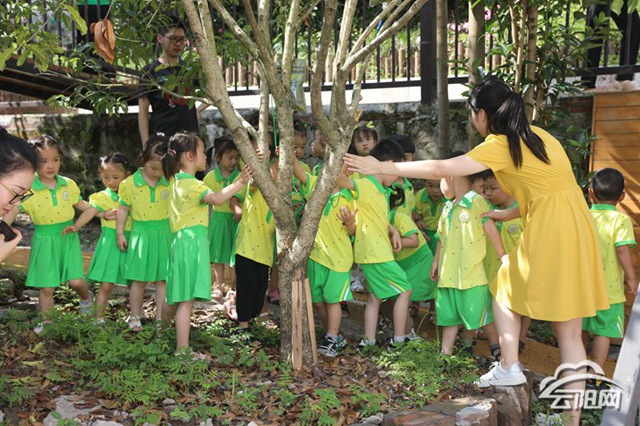 在幼兒園精心創(chuàng)設的自然環(huán)境里,在餐后的散步活動中,該園師生共同關注幼兒園新種植的樹種?!皹鋸哪睦飦??”“它們是什么時候種的?”“怎樣讓這些樹快快長大?”……帶著這些問題,該園師生、家長開展了“幼兒園里的果樹朋友”探秘活動,園長媽媽還帶來了疫情期間種樹的視頻和圖片,幫助孩子們尋找答案。接下來,該園將舉行果樹照護任務認領儀式,進一步培養(yǎng)孩子們對果樹的愛護情感、勞動興趣和勞動能力。