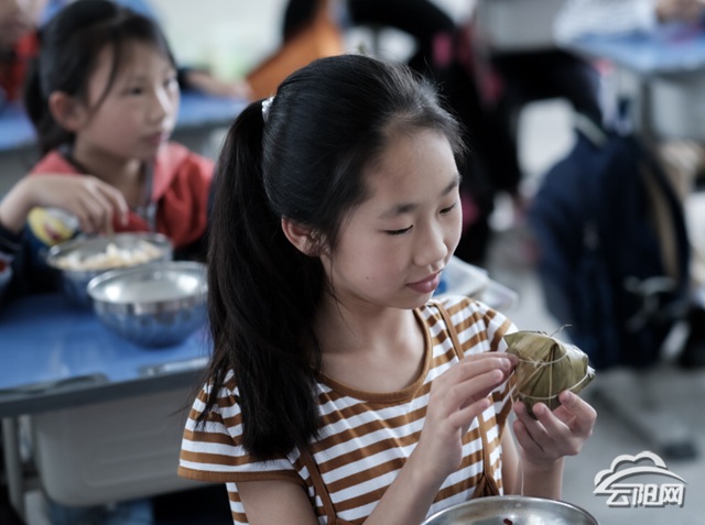 青山小學為全體師生準備了香甜軟糯的粽子,各班學生們在自己的教室里歡聚一堂,吃粽子,講笑話,每個孩子的臉上都洋溢著幸福的笑容。