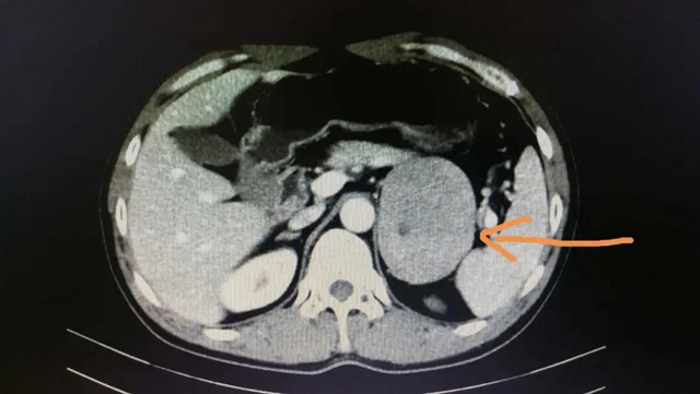 該患者,男性,52歲,因“尿頻2年”住院,檢查發(fā)現(xiàn)左側(cè)腎上腺腫瘤(9cm)。