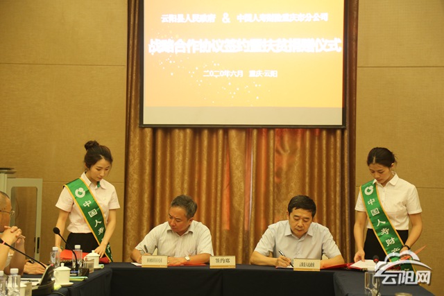 儀式上,中國(guó)人壽財(cái)險(xiǎn)重慶市分公司向云陽(yáng)縣人民政府捐贈(zèng)了扶貧資金,雙方簽訂了戰(zhàn)略合作協(xié)議。