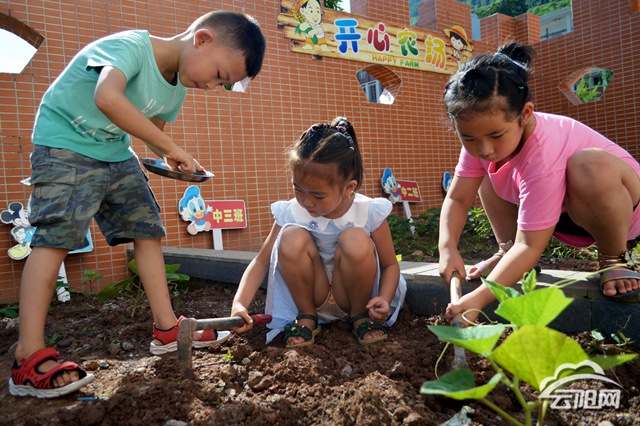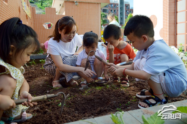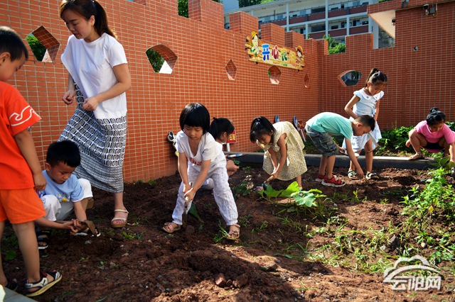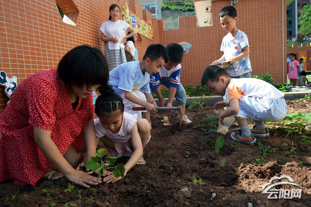 云陽(yáng)網(wǎng)訊(通訊員 彭書美 胡靜波) 6月30日上午,重慶市云陽(yáng)縣紅獅鎮(zhèn)中心幼兒園舉辦勞動(dòng)實(shí)踐主題班課,30多名幼兒們通過(guò)在校園里的“開心農(nóng)場(chǎng)”翻地、除草、打窩,歡快地種下玉米、黃豆等種子和生菜、南瓜、草莓等幼苗,寄托美麗的暑假心愿,期待秋季開學(xué)比比誰(shuí)長(zhǎng)得高、長(zhǎng)得快。