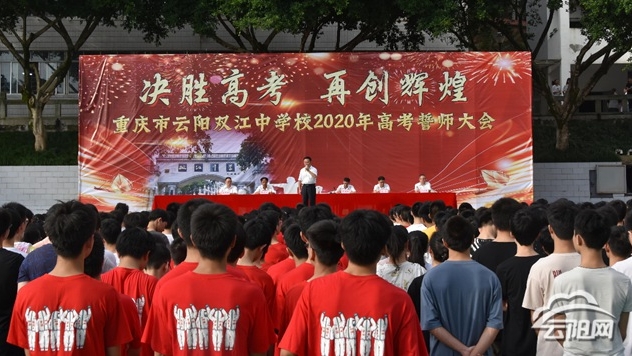 云陽網(wǎng)訊 (通訊員 陳垣廷) 7月3日一大早,云陽迎來了久違的太陽。在和煦的晨風(fēng)中和溫暖的陽光下,雙江中學(xué)高2020級1464名考生,舉行了隆重?zé)崃业母呖伎记笆膸煷髸?/span>