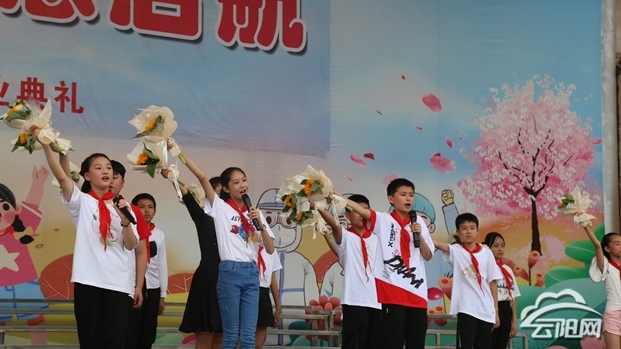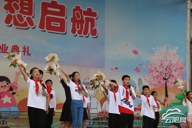 畢業(yè)典禮上,學(xué)校領(lǐng)導(dǎo)向全體畢業(yè)生進(jìn)行了致辭,表達(dá)對(duì)畢業(yè)生誠(chéng)摯的祝愿;畢業(yè)生代表也用真摯的話語(yǔ)表達(dá)了對(duì)母校的依戀,對(duì)老師的感激;少先隊(duì)員代表向?qū)W校領(lǐng)導(dǎo)及六年級(jí)任課老師獻(xiàn)花,行謝師禮,畢業(yè)班老師滿懷激動(dòng)與不舍。