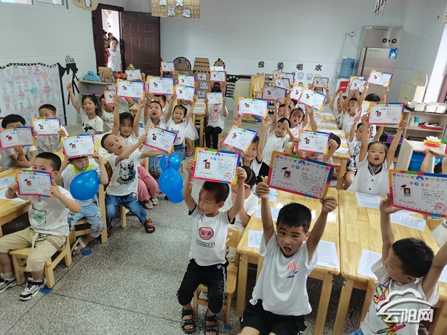 大班全體幼兒表演的手語(yǔ)《陪我長(zhǎng)大》開(kāi)場(chǎng):“時(shí)間時(shí)間像飛鳥,滴答滴答向前跑,今天我們畢業(yè)了……”一首《畢業(yè)歌》唱出了孩子們心中的不舍和感激之情。接著,老師們?yōu)楹⒆觽兯蜕显?shī)朗誦《永遠(yuǎn)的守巢人》。“謝謝您!老師”孩子們?nèi)w起立齊聲高呼鞠躬致謝感動(dòng)全場(chǎng),齊唱《聽(tīng)我說(shuō)謝謝你》讓在場(chǎng)的每一位老師和家長(zhǎng)都熱淚盈眶,深情鼓掌。隨后,水市小學(xué)負(fù)責(zé)人致辭為孩子們送上祝福,并頒發(fā)畢業(yè)證書。