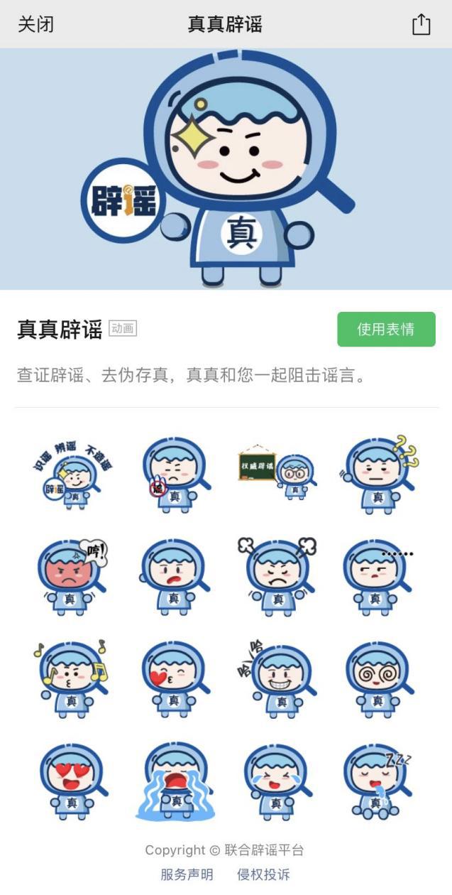 微信表情商店搜索“真真辟謠”