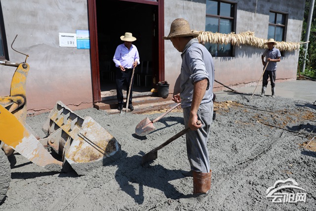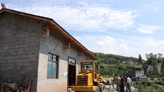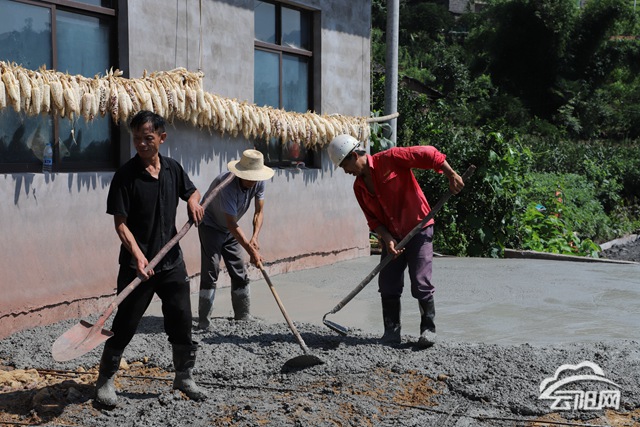 記者在李登成家院壩看到,一輛小型鏟車把混凝土運(yùn)往院壩,卸下后,幫扶干部和黨員群眾開始平整地基、硬化地面,院壩硬化區(qū)變得平整光滑。