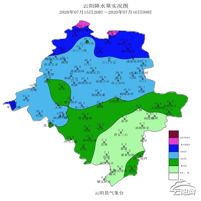 云陽縣氣象局2020年7月16日06時20分發(fā)布暴雨黃色預警信號:預計未來24小時,我縣大部鄉(xiāng)鎮(zhèn)雨量將達50mm以上,請注意防范。