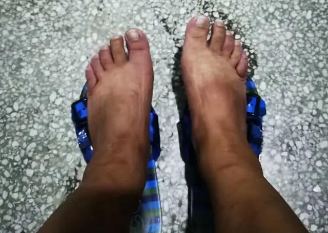 由于在水中長(zhǎng)時(shí)間侵泡,楊勝前回到宿舍脫下鞋,十個(gè)指甲已經(jīng)被水泡得發(fā)白。