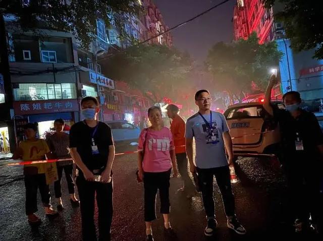 胡光焱(左三)在抗洪一線熬夜奮戰(zhàn)。