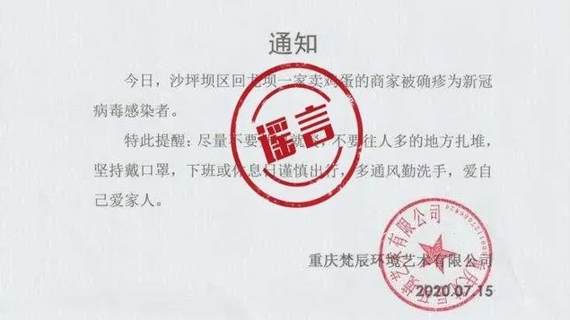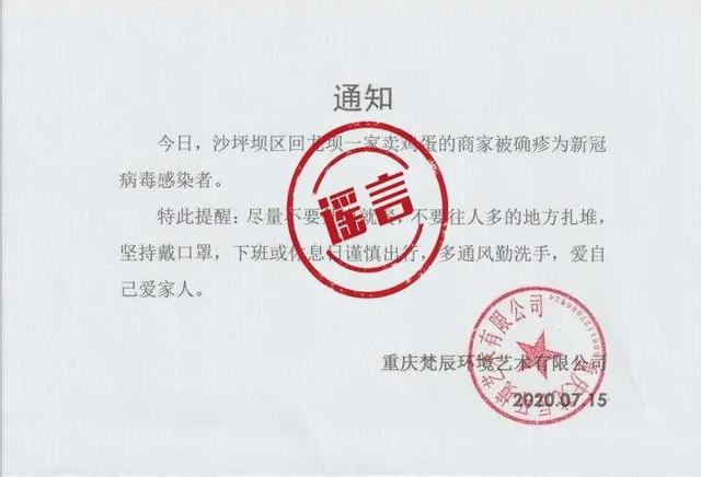 謠言:沙坪壩區(qū)回龍壩一家賣雞蛋的商家被確診新冠肺炎