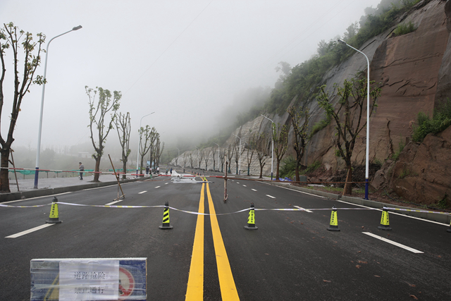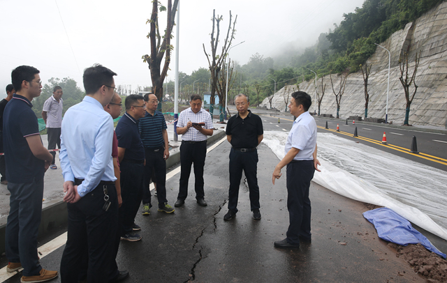 當天,張學鋒還查看了燈籠石公園、北城大道三期受損情況。燈籠石隧道上方發(fā)生泥石滑落,北城大道三期路面出現(xiàn)裂縫,存在極大安全隱患,目前相關(guān)道路已經(jīng)封閉。張學鋒邊走邊看,仔細詢問應(yīng)急搶險措施落實情況,強調(diào)城管局、北部新區(qū)管委會等部門要切實落實責任,加強觀察監(jiān)測,強化人員值守,全力防范地質(zhì)災害發(fā)生。