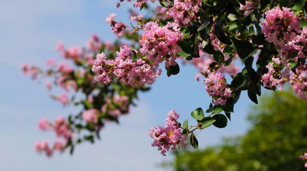 云陽月光草坪:江畔紫薇開 盛夏占芳菲