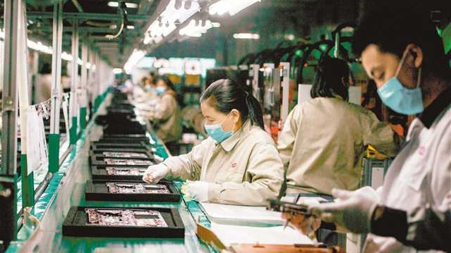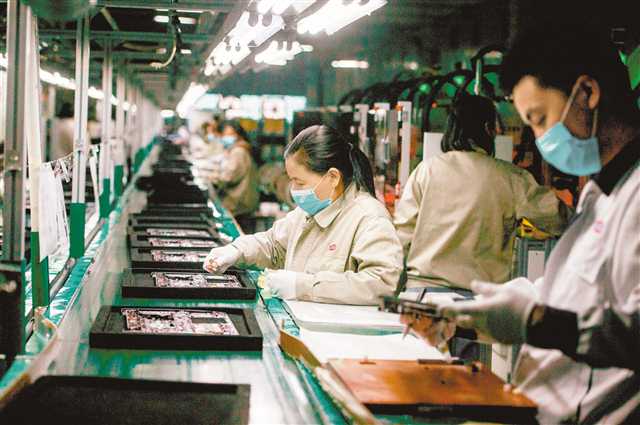 上半年,璧山區(qū)聚力發(fā)展經(jīng)濟(jì),當(dāng)?shù)仉娮优涮灼髽I(yè)訂單總體較去年同期增長(zhǎng)約20%。圖為重慶璧山區(qū)大泰科技生產(chǎn)車間,工人正在生產(chǎn)線上工作(攝于3月13日)。首席記者 崔力 攝/視覺(jué)重慶