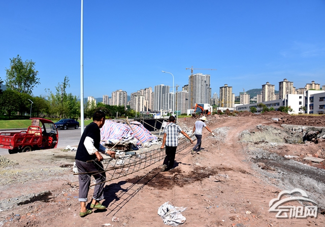 云陽網(wǎng)訊(記者 段斯斯 趙曉龍)8月5日,在月光草坪內(nèi)側(cè)環(huán)境綜合整治工程工地上,工人們不懼高溫,正澆筑墊層、綁扎地梁鋼筋,現(xiàn)場一片熱火朝天的施工景象。