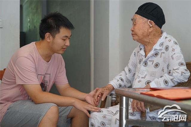 老人叫肖大興,出生于1916年,經歷了軍閥割據到抗日戰(zhàn)爭、解放戰(zhàn)爭那些戰(zhàn)火紛飛的歲月,格外珍惜現在來之不易的幸福生活。因為肖大興老人常年患病,兒子身患殘疾,兒媳無法工作,一家人都享受了國家的低保政策,孫子肖波上大學也享受了國家助學貸款和獎學金等,今年肖波大學畢業(yè),老人再一次提出想讓孫子報名參軍。