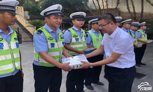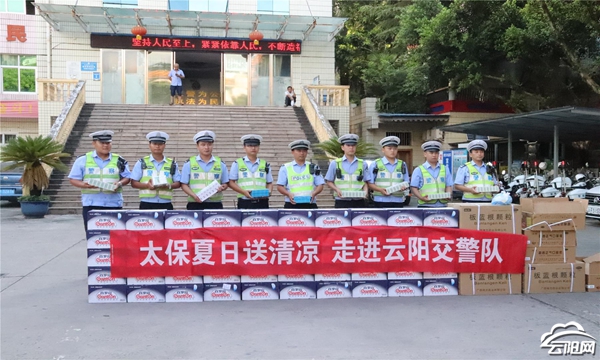 云陽(yáng)網(wǎng)訊(實(shí)習(xí)生 洪琳 文金月)8月12日,太平洋保險(xiǎn)公司帶著礦泉水、防暑藥品等來(lái)到縣交巡警大隊(duì),給奮戰(zhàn)在一線的交警們送去了清涼的夏日問(wèn)候。